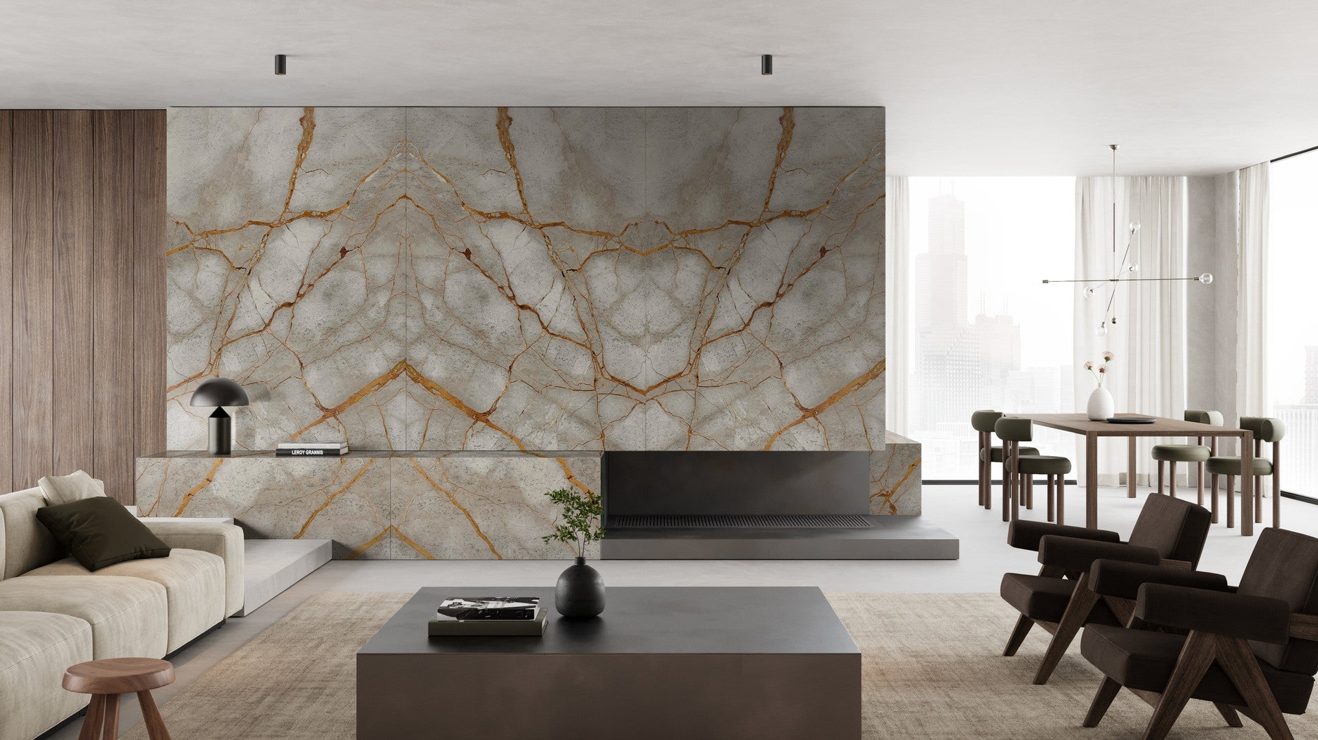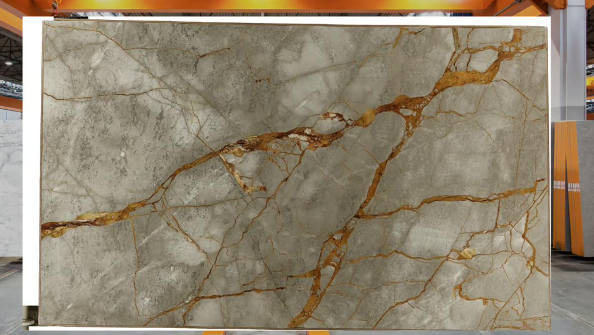 Aurora Aurea marble is celebrated for its striking combination of cool gray tones and bold golden veining. This luxurious marble features a dynamic interplay of light and dark textures, making it a perfect choice for those seeking a sophisticated yet dramatic aesthetic.
