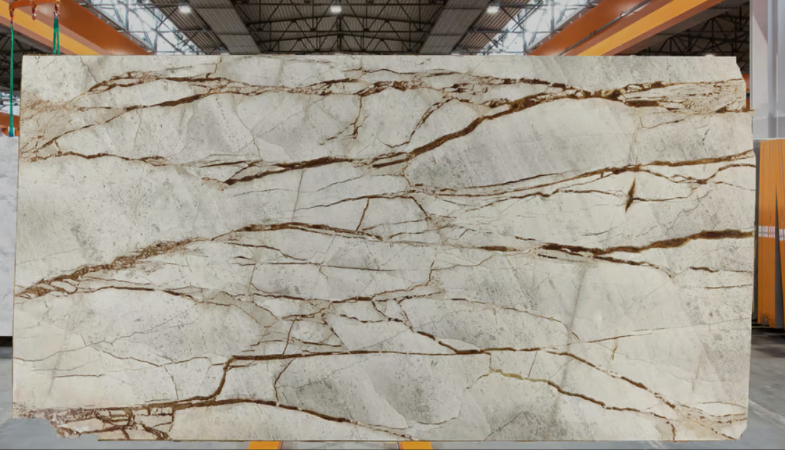 Ideal for flooring, countertops, accent walls, and high-end interior designs, Aurora Aurea embodies elegance and exclusivity. The golden veining enhances its visual appeal, creating a rich, opulent feel that pairs well with both modern and classic spaces. Each slab is unique, ensuring an artistic and timeless touch in every application.