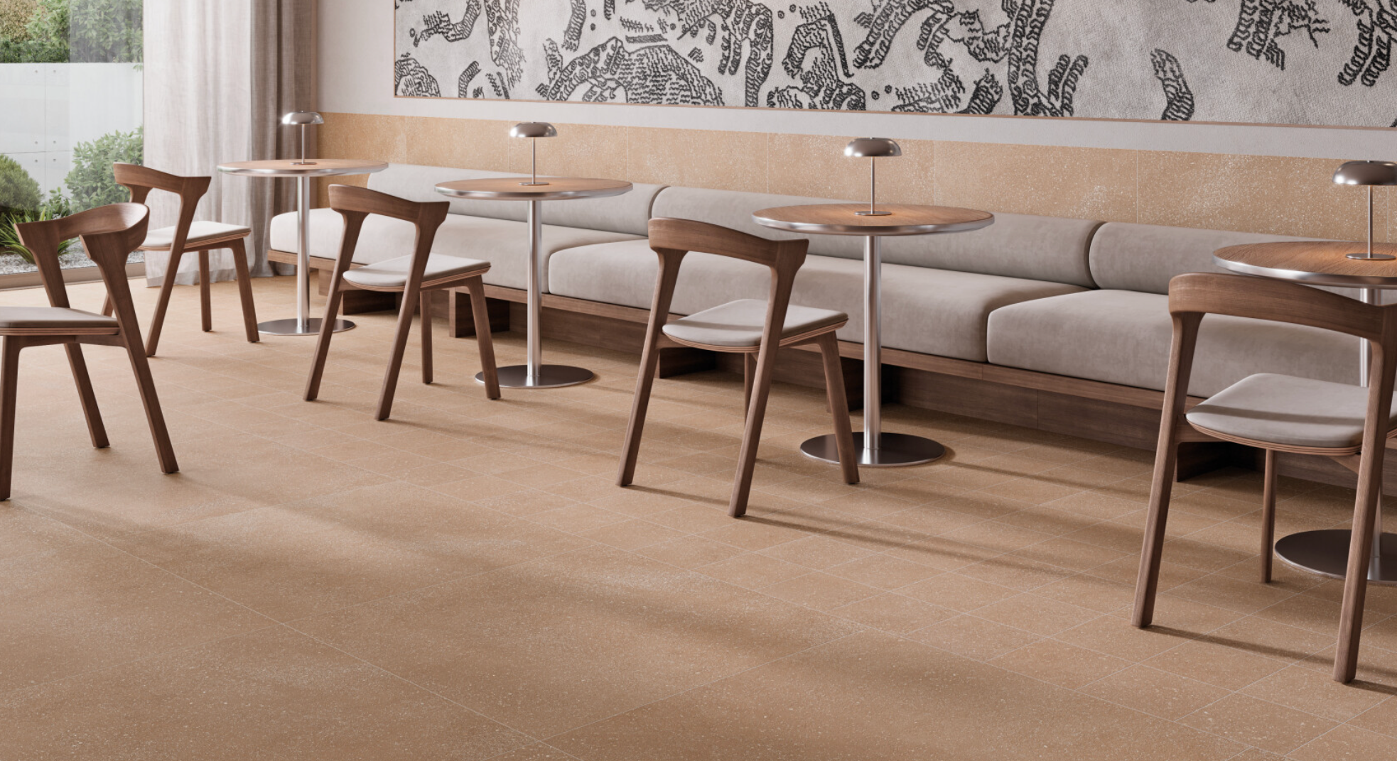Inspired by the silent beauty of the night sky, Creation emerges as a porcelain stoneware collection that blends subtle elegance with timeless character. Its surface, sprinkled with delicate white particles, evokes the image of a starry sky, adding visual depth and a touch of magic to any space. Creation offers versatility for both residential and commercial projects seeking a unique identity. An invitation to find beauty in the details and to transform the everyday into something truly extraordinary.