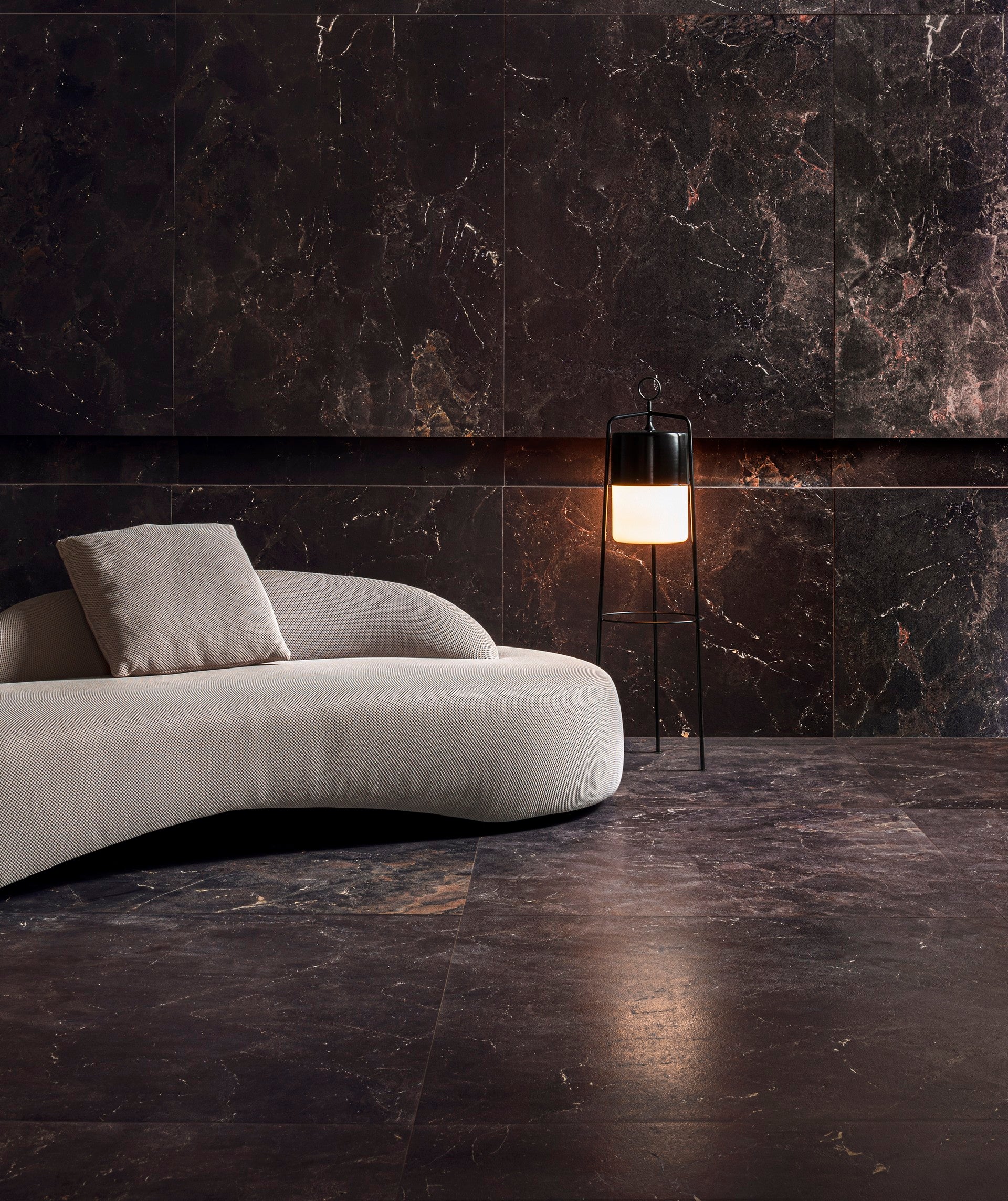 Imagined to surpass limits. To reach the frontier of technical and aesthetic innovations and possibilities. That was the guiding principle in the development of this new surface. A fusion of the strength of natural stones with the warmth of leather and the elegance of gold gave rise to Dromoto, with its designs, reliefs, protrusions, textures, and predominant tones between black and brown. Dromoto is born to be timeless, for projects and individuals who dream of boldness. Use it at home, for leisure, and at work.