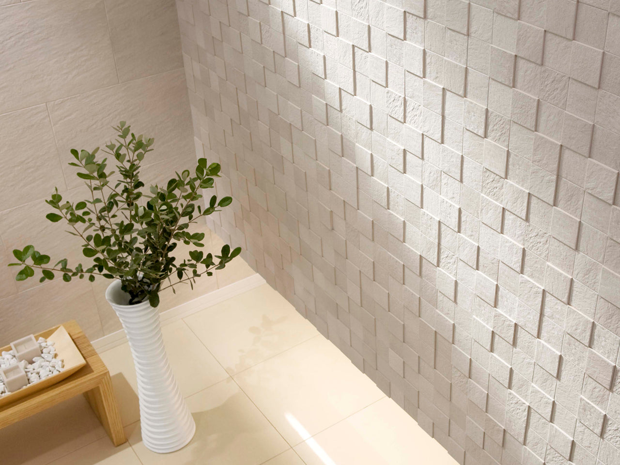 Masonry meets modernity in Petrasquare. Its grid of softly textured square forms adds sculptural depth, creating an ideal canvas for feature walls rooted in classic proportion.