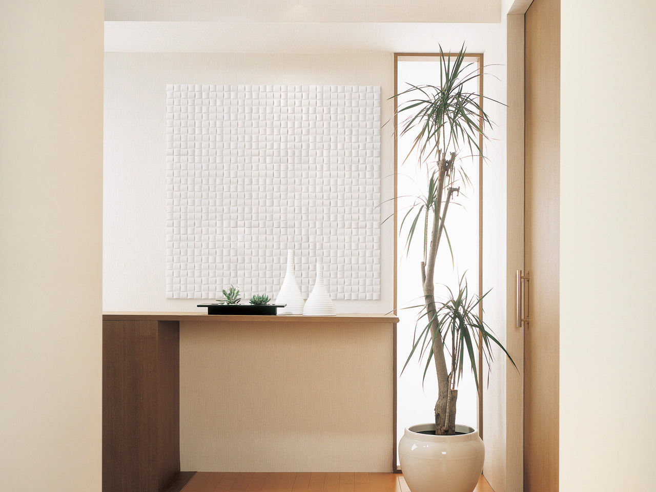 Ecocarat Vele comprises a superbly designed selection of interior wall-finishing materials. Infused with a feel of natural material content and coloring daily scenes with magnificent spirit. Moreover, installation can provide moisture regulating performance that can capture or release indoor humidity.