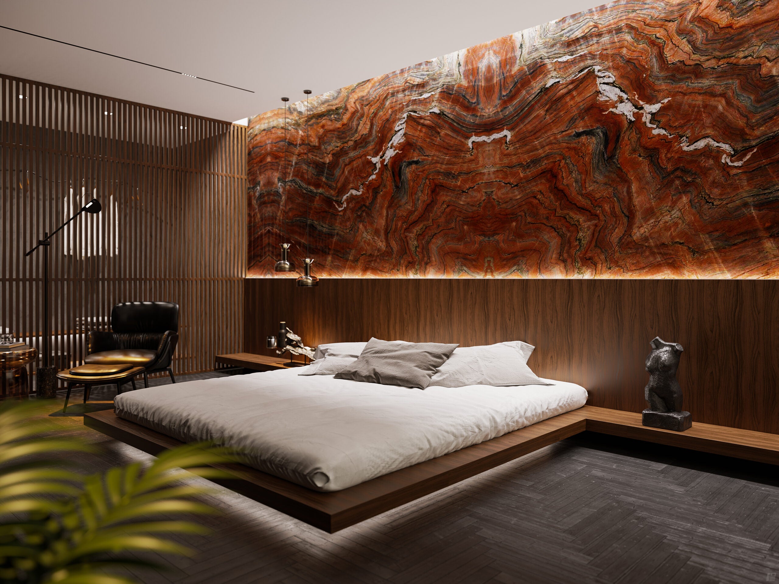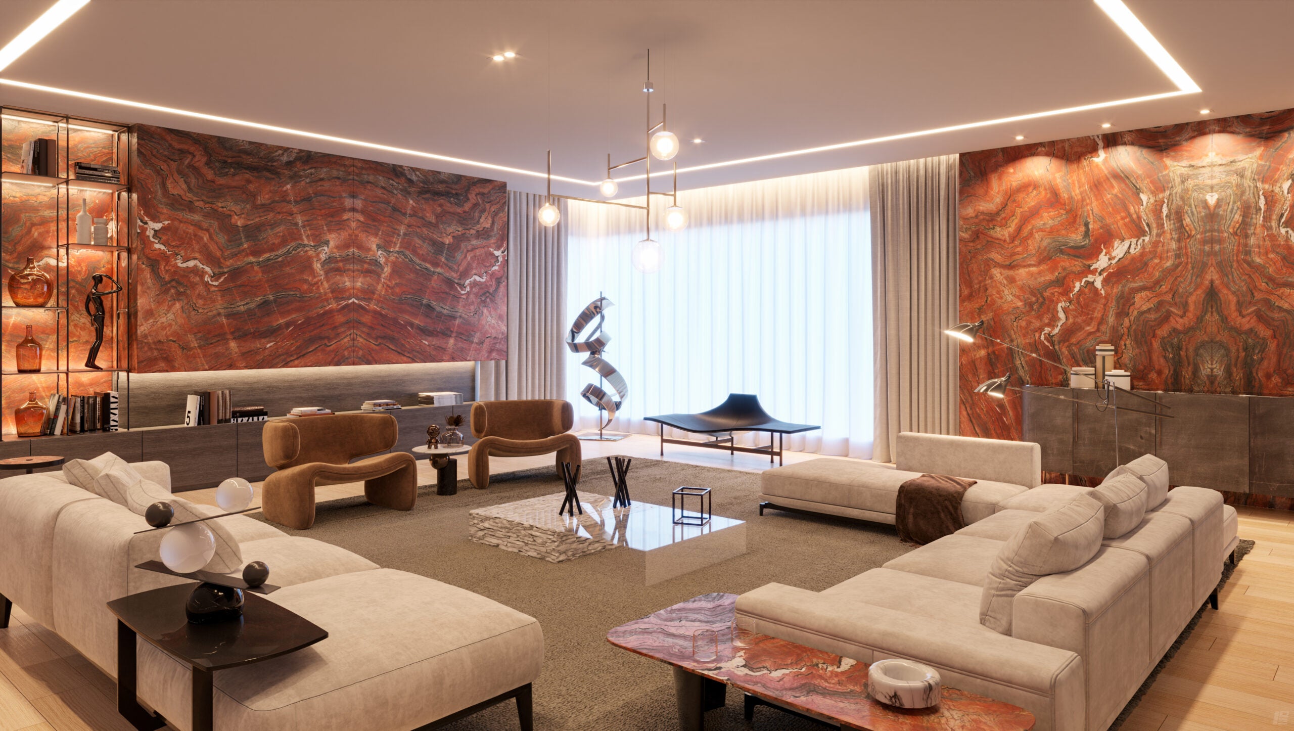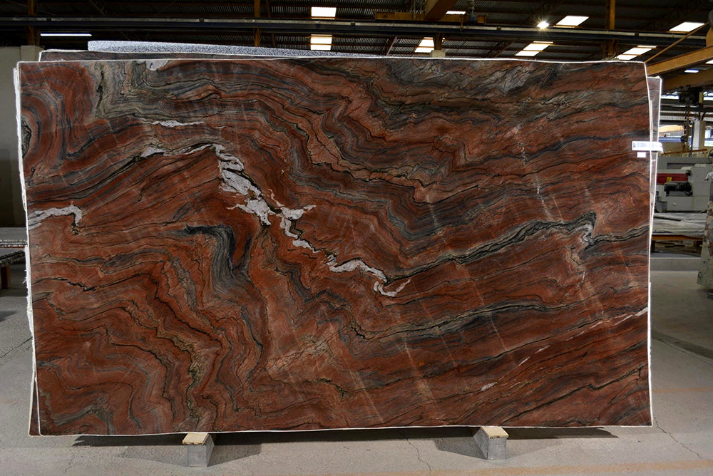 Ember Rosso is a vibrant quartzite that captivates with its deep, rich hues of red, brown, and black, reminiscent of fiery embers. Characterized by dramatic, flowing veins and intricate patterns, this exotic quartzite exudes luxury and sophistication, making it an excellent choice for high-end interior and exterior applications.