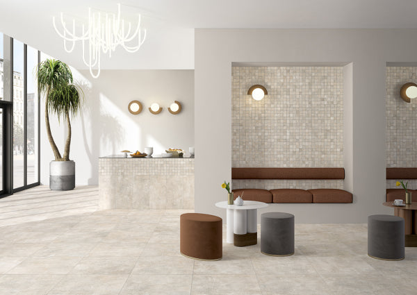 Encontra is a porcelain stoneware collection characterized by pleasant color transitions, where the care and richness of the details give character and elegance to the product.