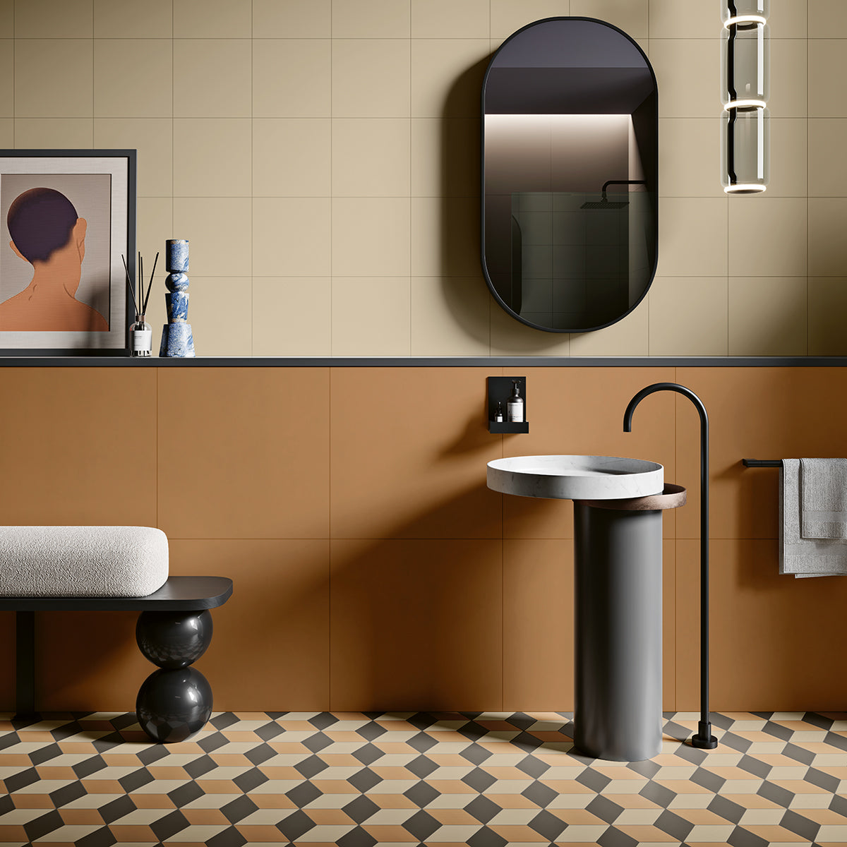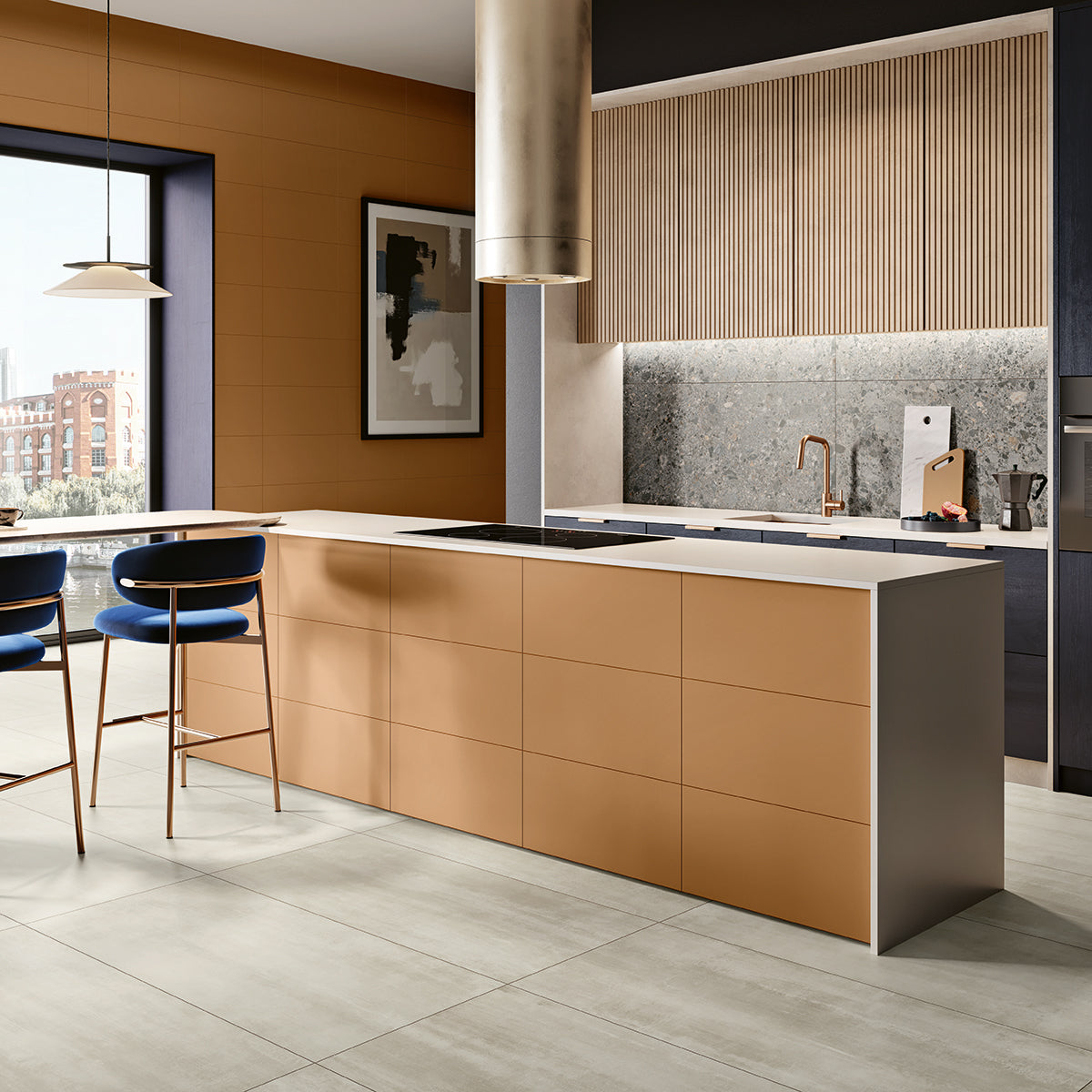 Embark on a colorful journey with Hearings. With this through-body porcelain wall and floor series, you can mix and match colors to create a set of harmonious tones that add continuity and depth to designs.