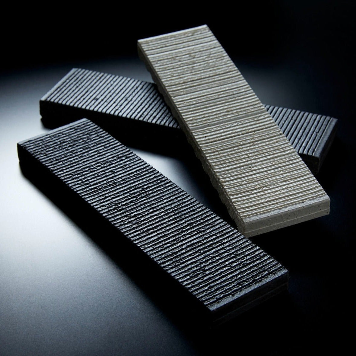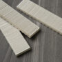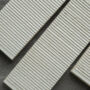 The scratch surface design of Hikkaki is available in a white glaze. It is suitable for fireplaces, walls in bathrooms or laundries and the individual pieces allow for preferred pattern arrangements.