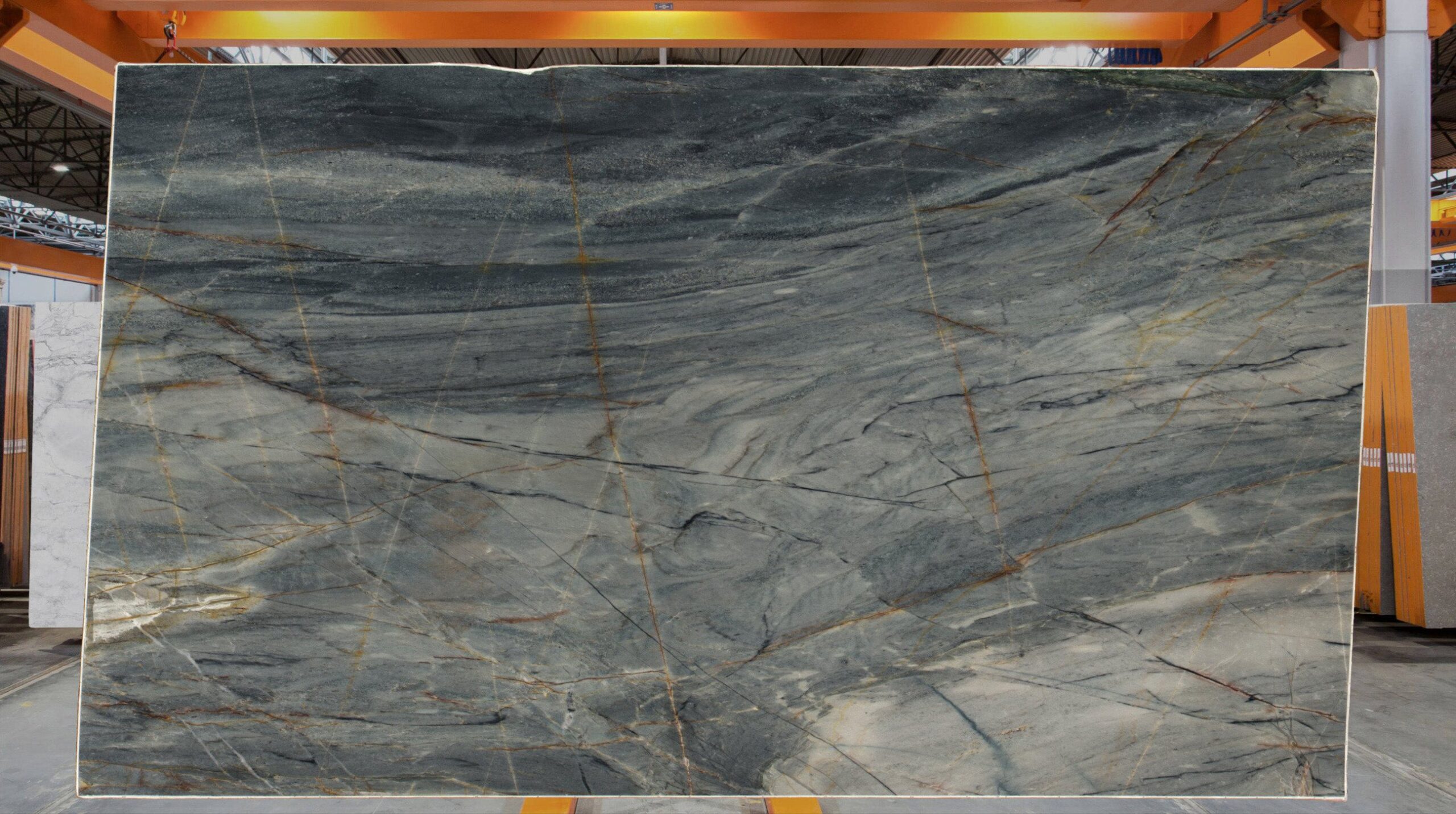 The rich tonal variations and organic patterns make this quartzite a distinctive choice for feature walls, countertops, flooring, and custom design elements.