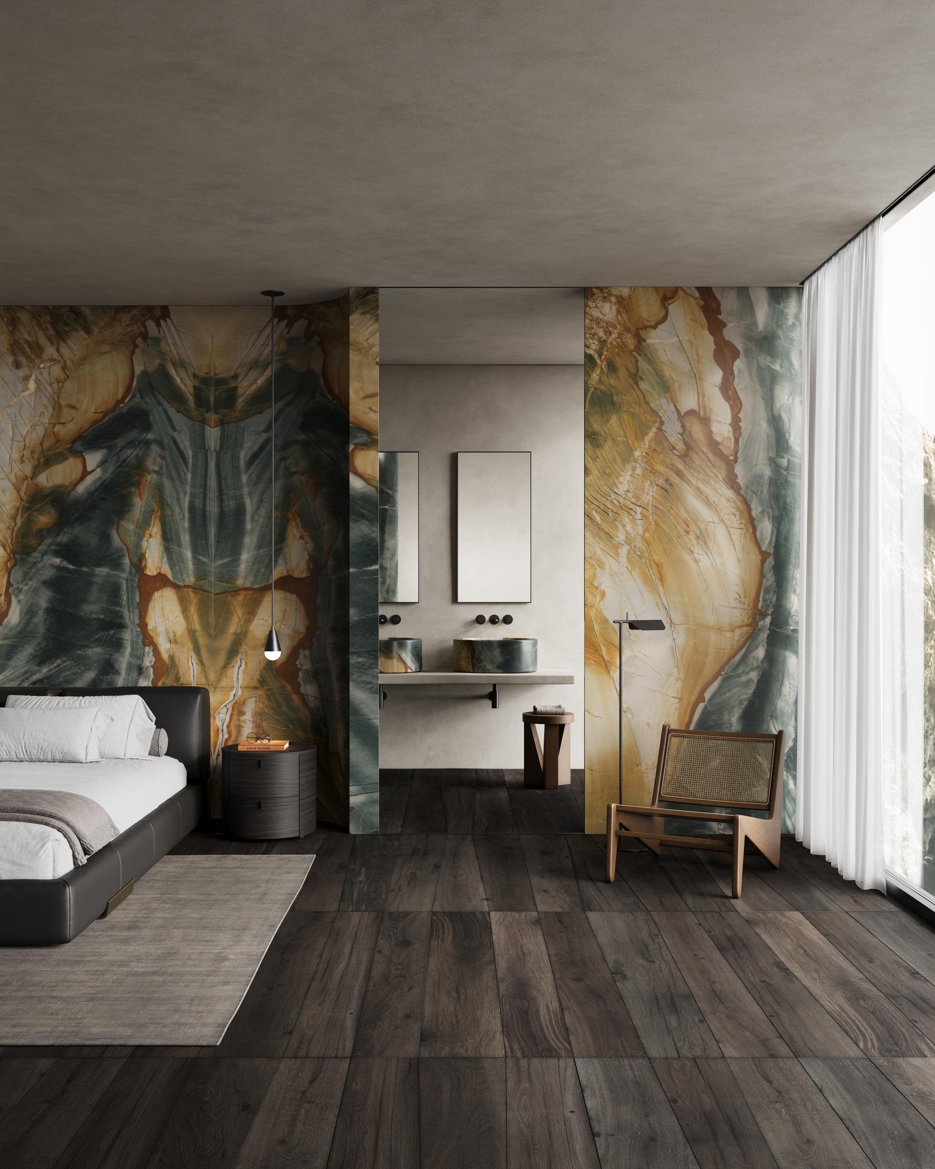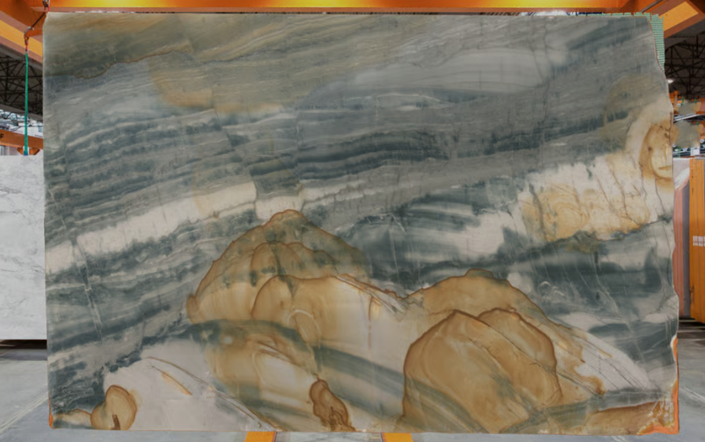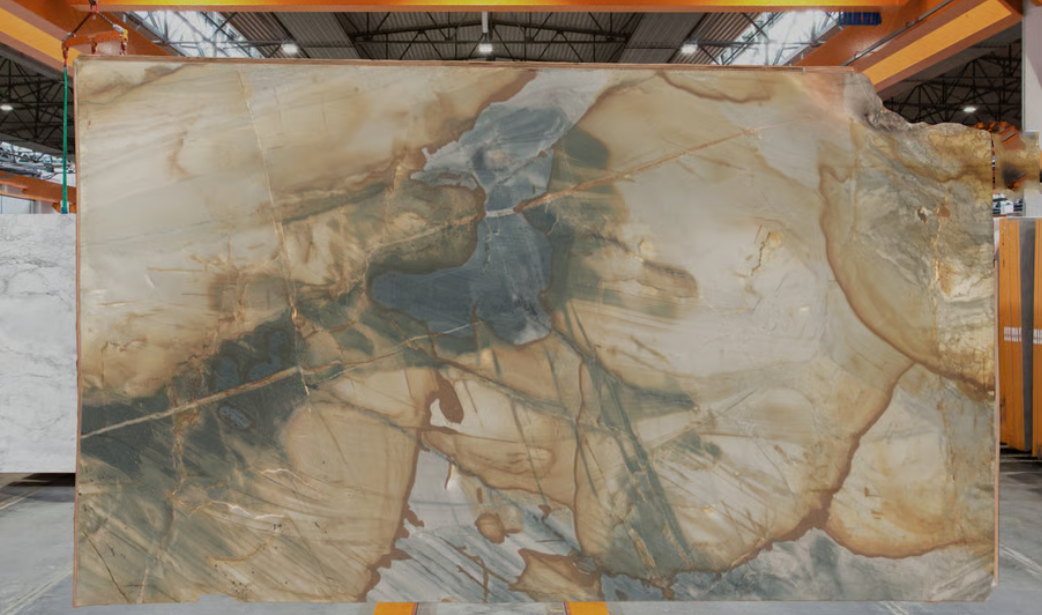 Lustra Oro is an exquisite Brazilian quartzite celebrated for its rich golden and green veining that ripples across a creamy, neutral base. Each slab tells a unique visual story, with flowing patterns that evoke movement and natural elegance. The harmonious blend of warm and earthy tones makes Lustra Oro a standout choice for spaces seeking both drama and sophistication. Its dynamic coloration is particularly striking when used in large-scale applications or bookmatched designs, creating a bold and luxurious statement.