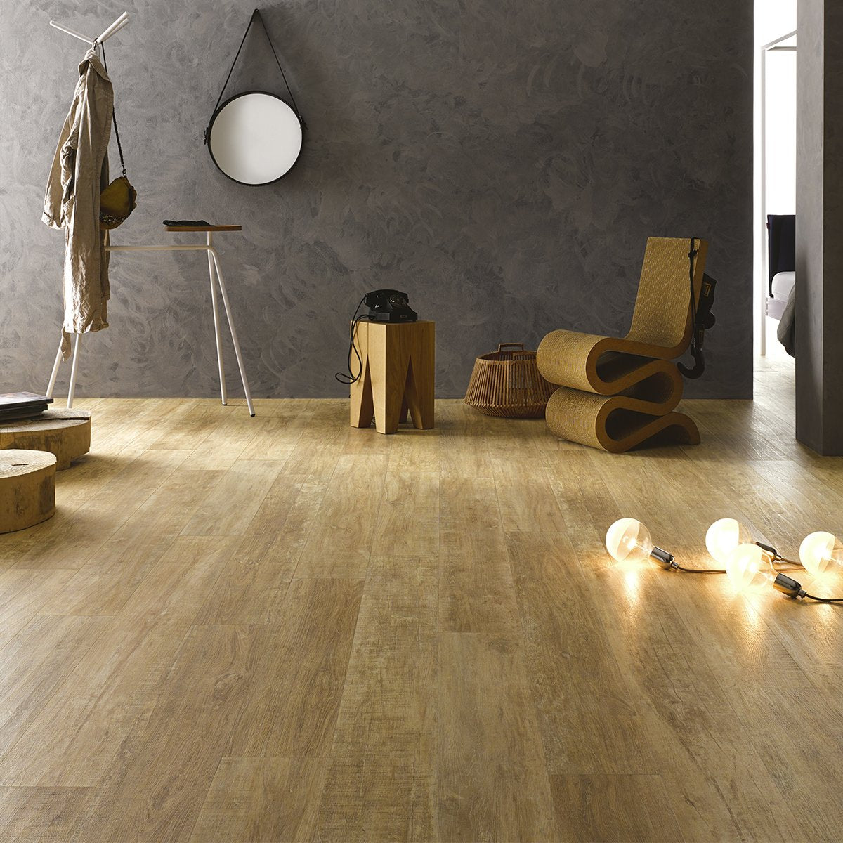Thanks to its thickness of 5.5mm, the surface recreates, in incredible detail, the different degrees of roughness and relief typical of aged wood fibres that have been planed by hand.