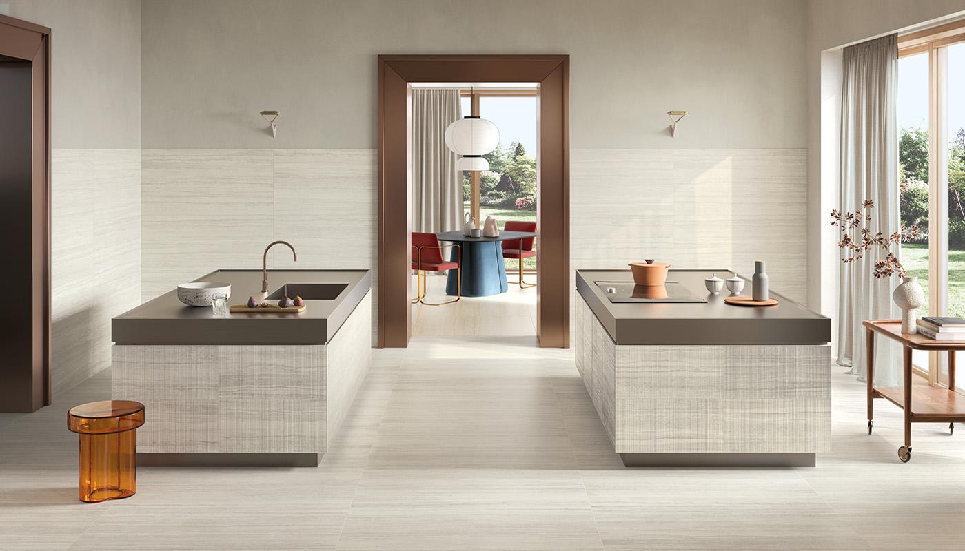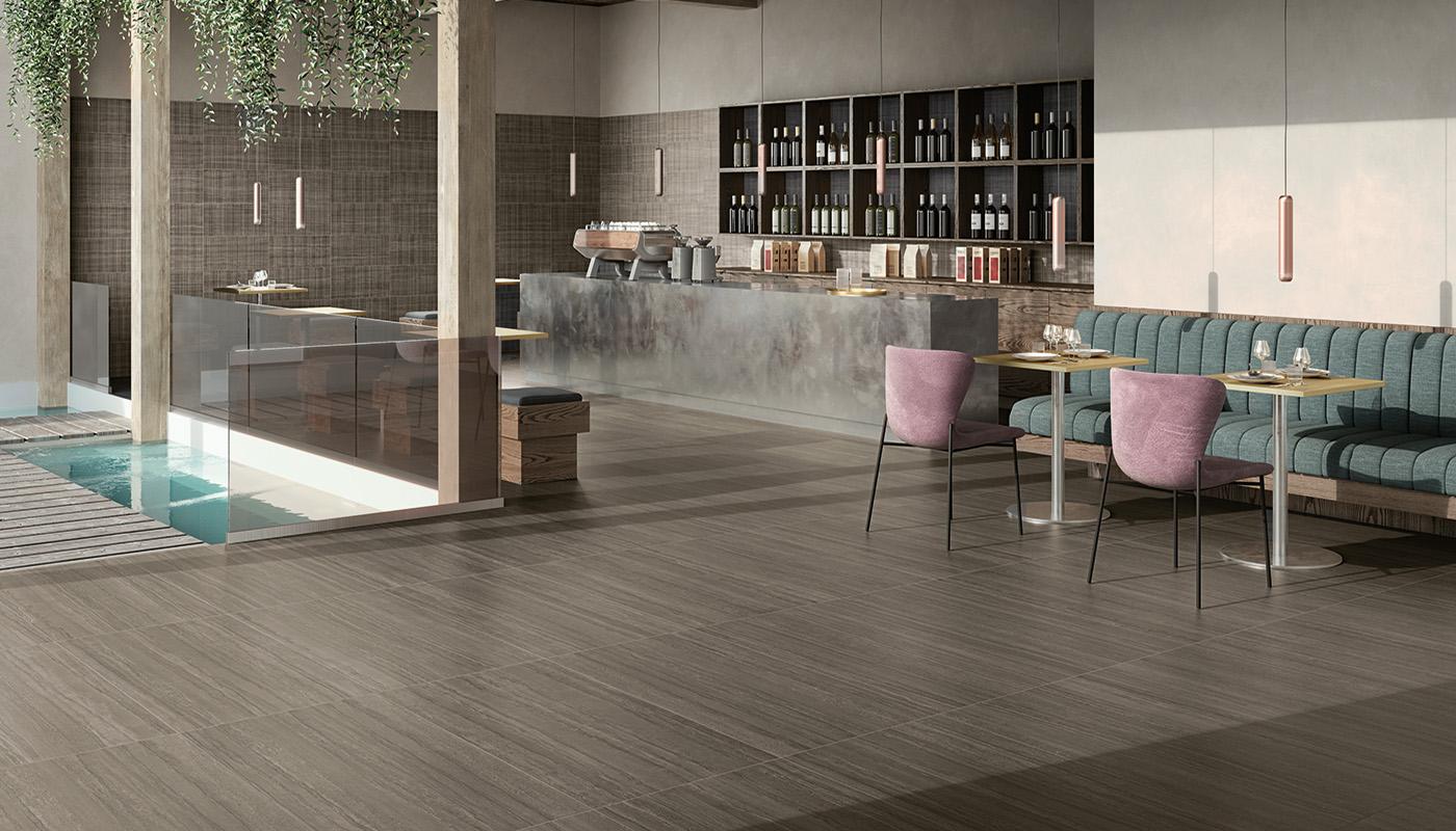 Soft, harmonious atmospheres, created through precise floor and wall combinations, become the protagonists of an exclusive story which describes the new living spaces. Large vein patterns, energetic shade nuances, and a rich variety of original details differentiate graphical textures with a high level of variability, for a visual effect which is never repetitive.