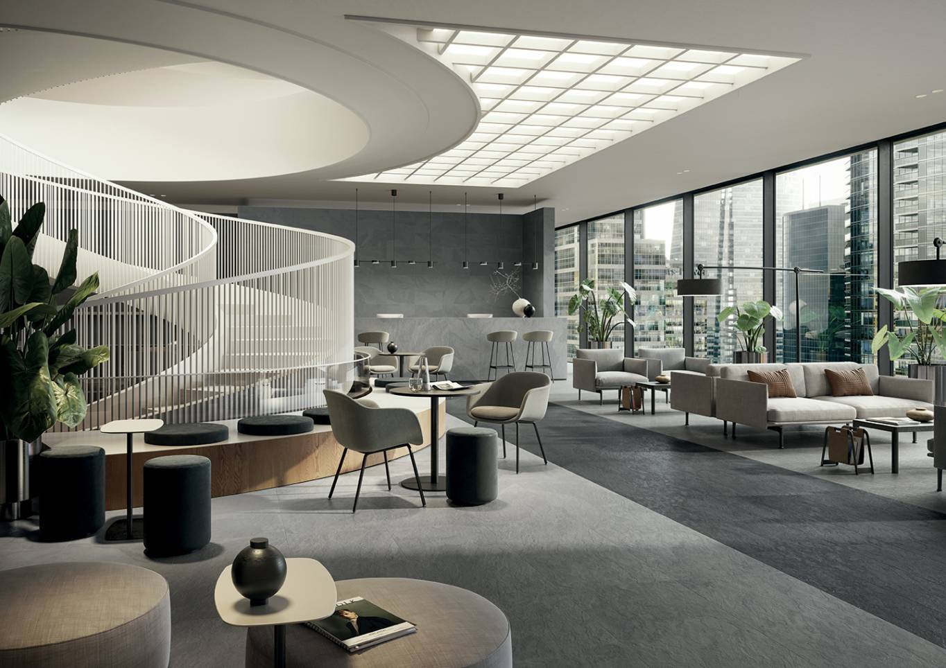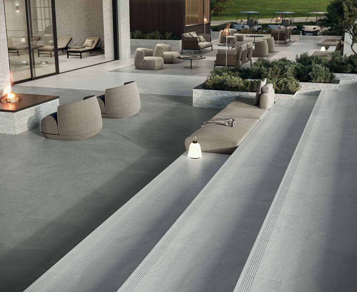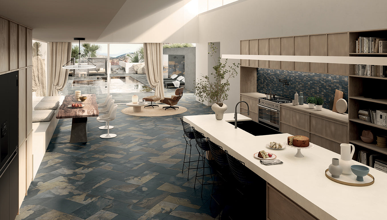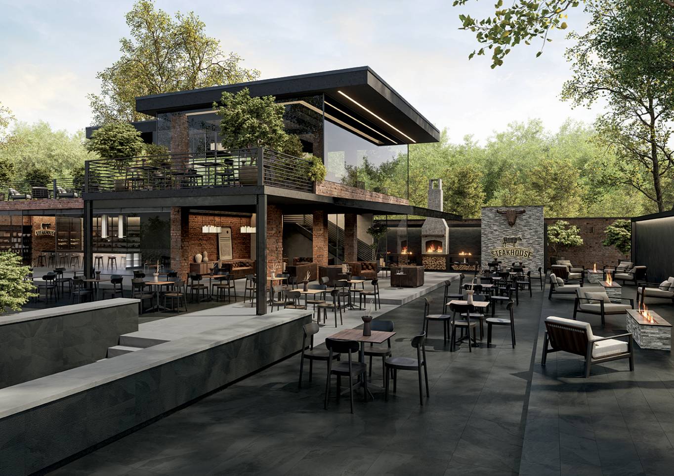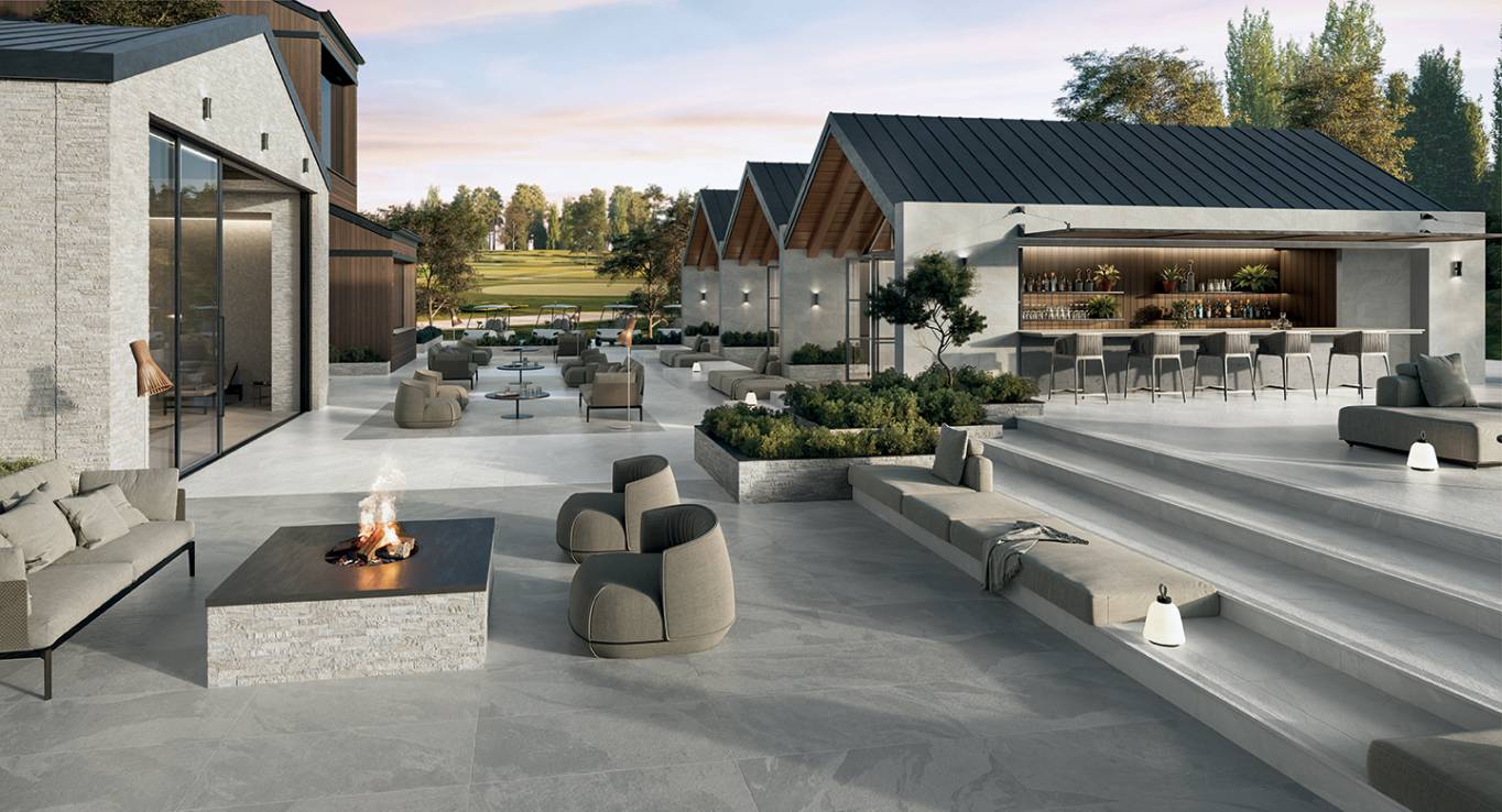Paramount captures the spirit of natural slate, a sedimentary rock renowned for its aesthetics and importance in American architecture. The collection embodies two distinctive personalities, one featuring a tone-on-tone graphic and the other an enriched pattern, to design a total stone look for both indoor and outdoor applications.
