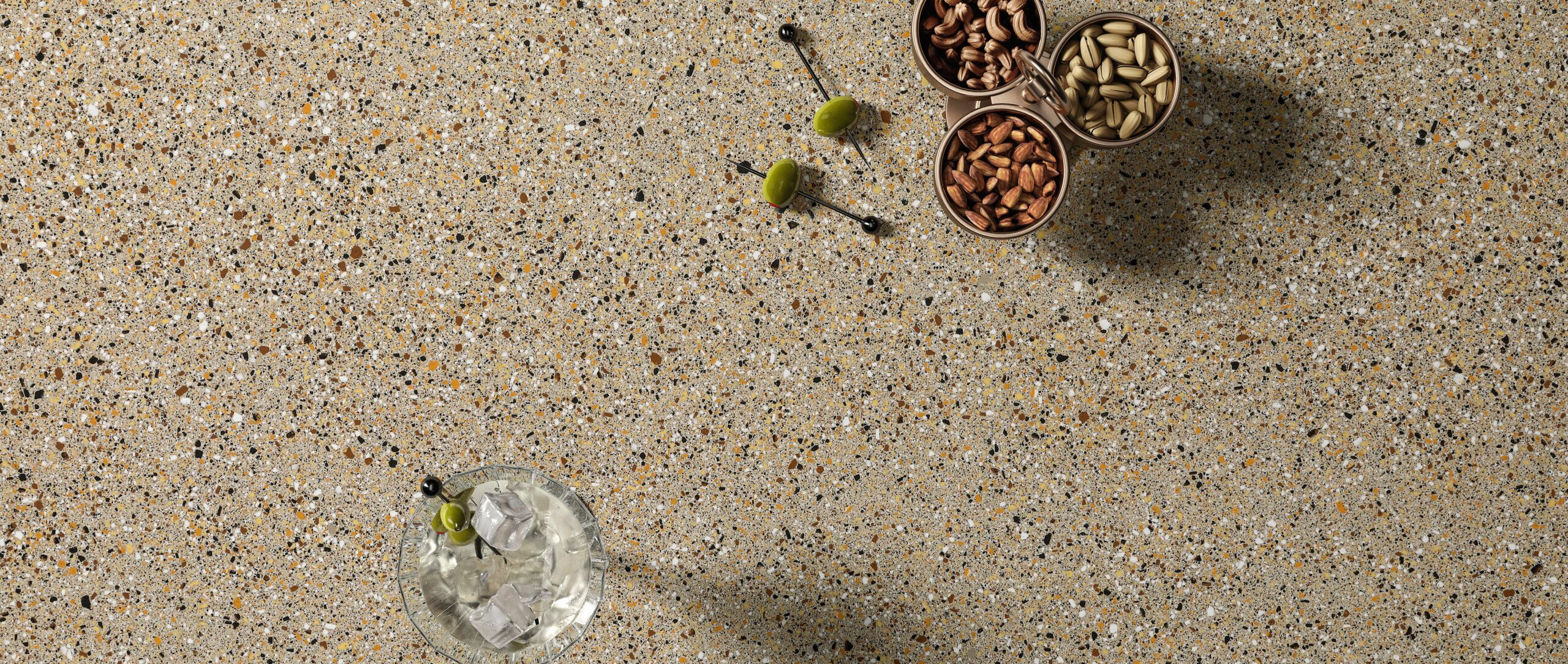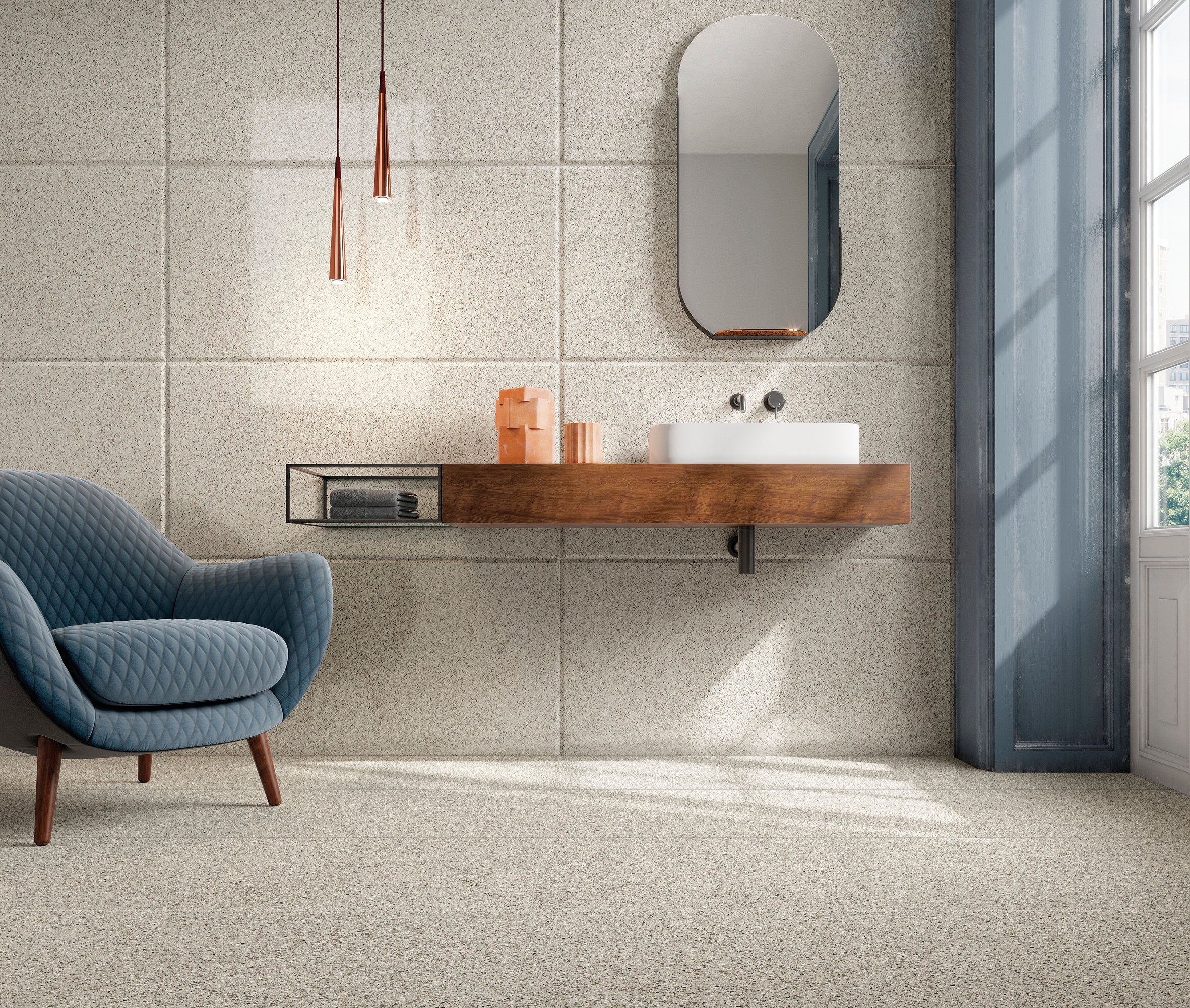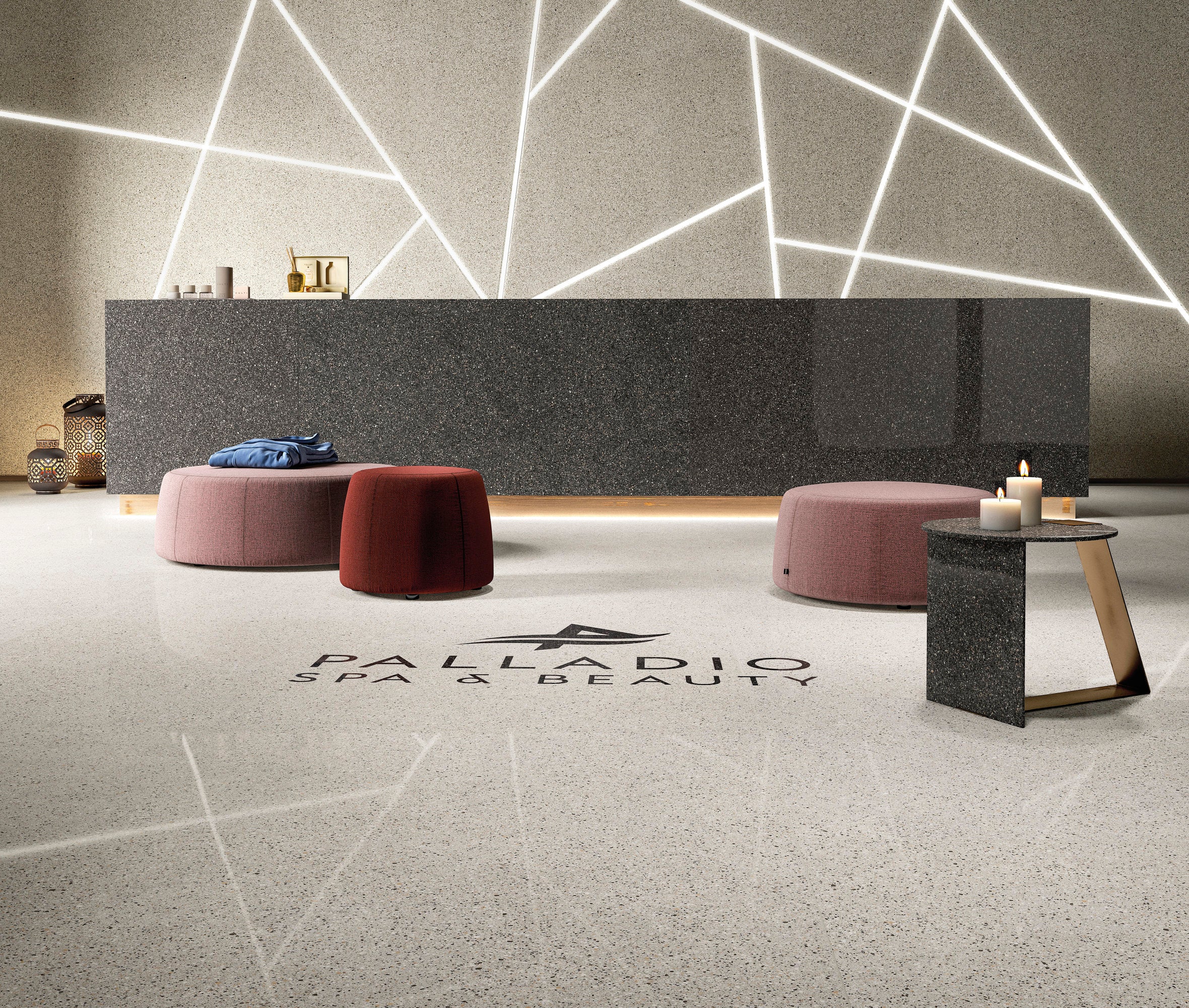 A material that is homogeneous throughout. A solid material which makes no distinction between outer surface and core, made with interpenetrating mixes of different colors. Portal Lado is made exclusively from prestigious minerals and clays, extracted and worked using sustainable methods. Earth, water and fire: no solvents, resins or chemical additives. One-of-a-kind production facilities and know-how permit preparation and combination of the extraordinary variety of colored mixes and fragments that go into every Portal Lado tile. Multiple colored mixes are randomly blended to create a unique, unrepeatable mix in every slab. A system of patented technologies reproduces the randomness of nature and handmade objects. Powerful presses compact the slabs; ultra-high firing temperatures irreversibly weld and fuse the minerals to create a new material: hard, compact, impermeable, rock solid. Every single slab looks different from all the others. The distribution of the colors and grain, random and unrepeatable, composes a harmony with the unique fascination of nature and hand craftsmanship.