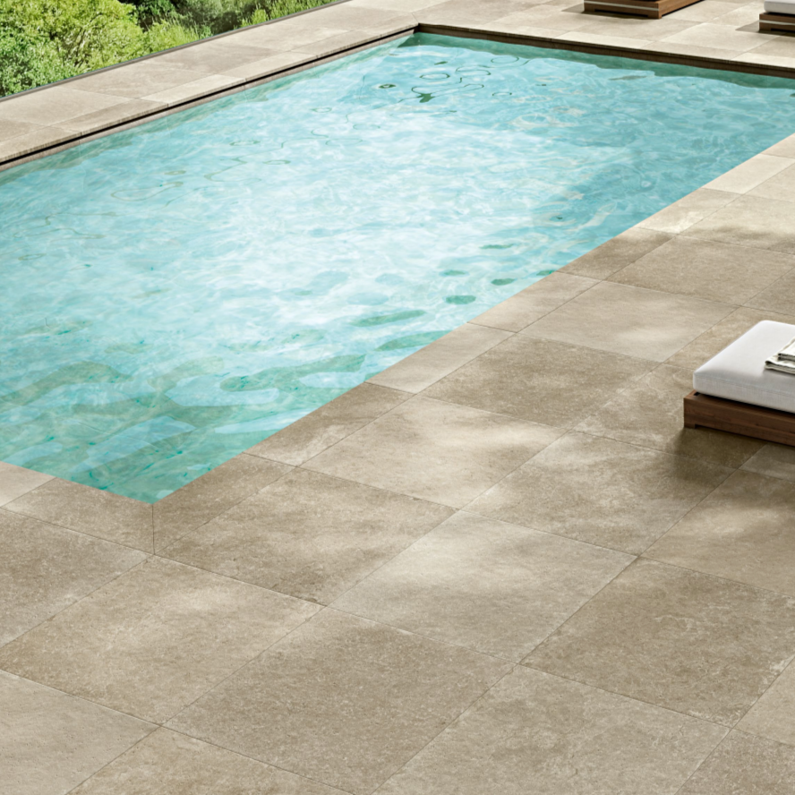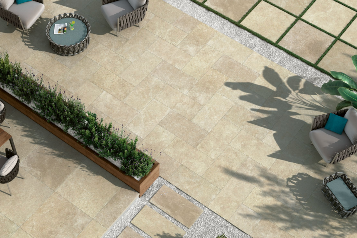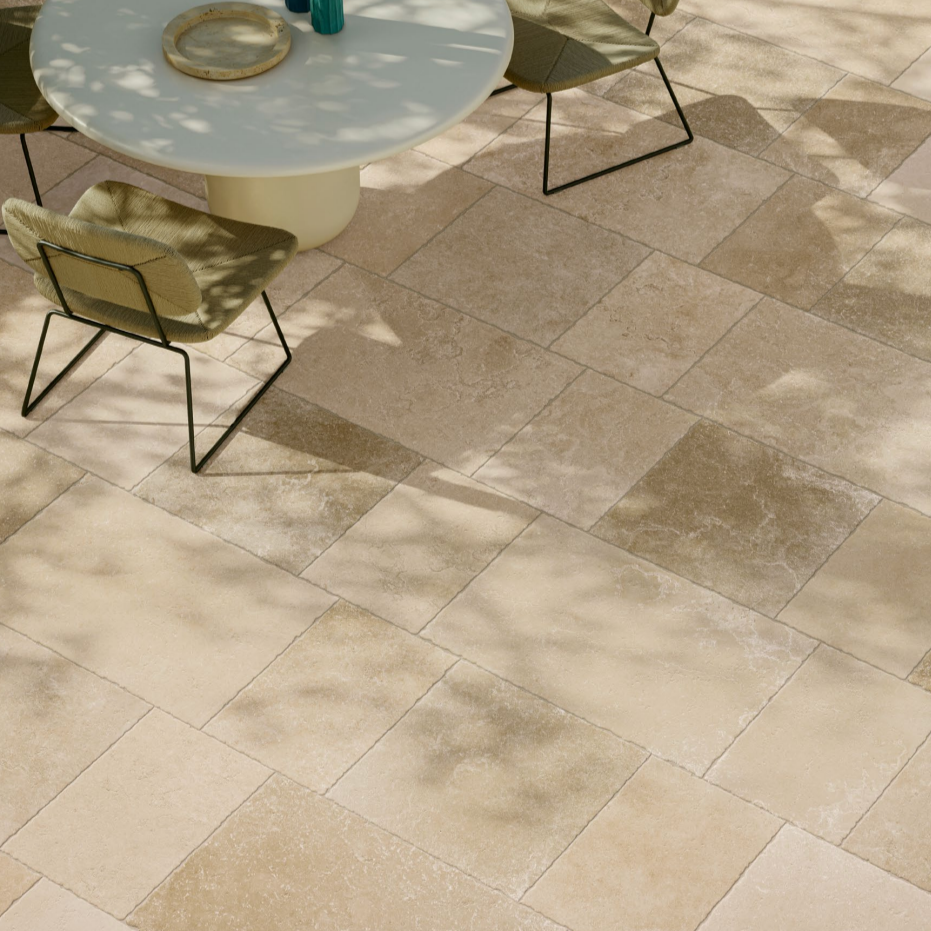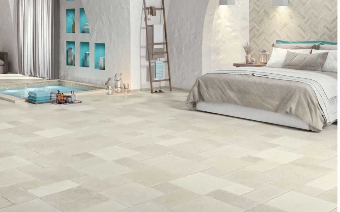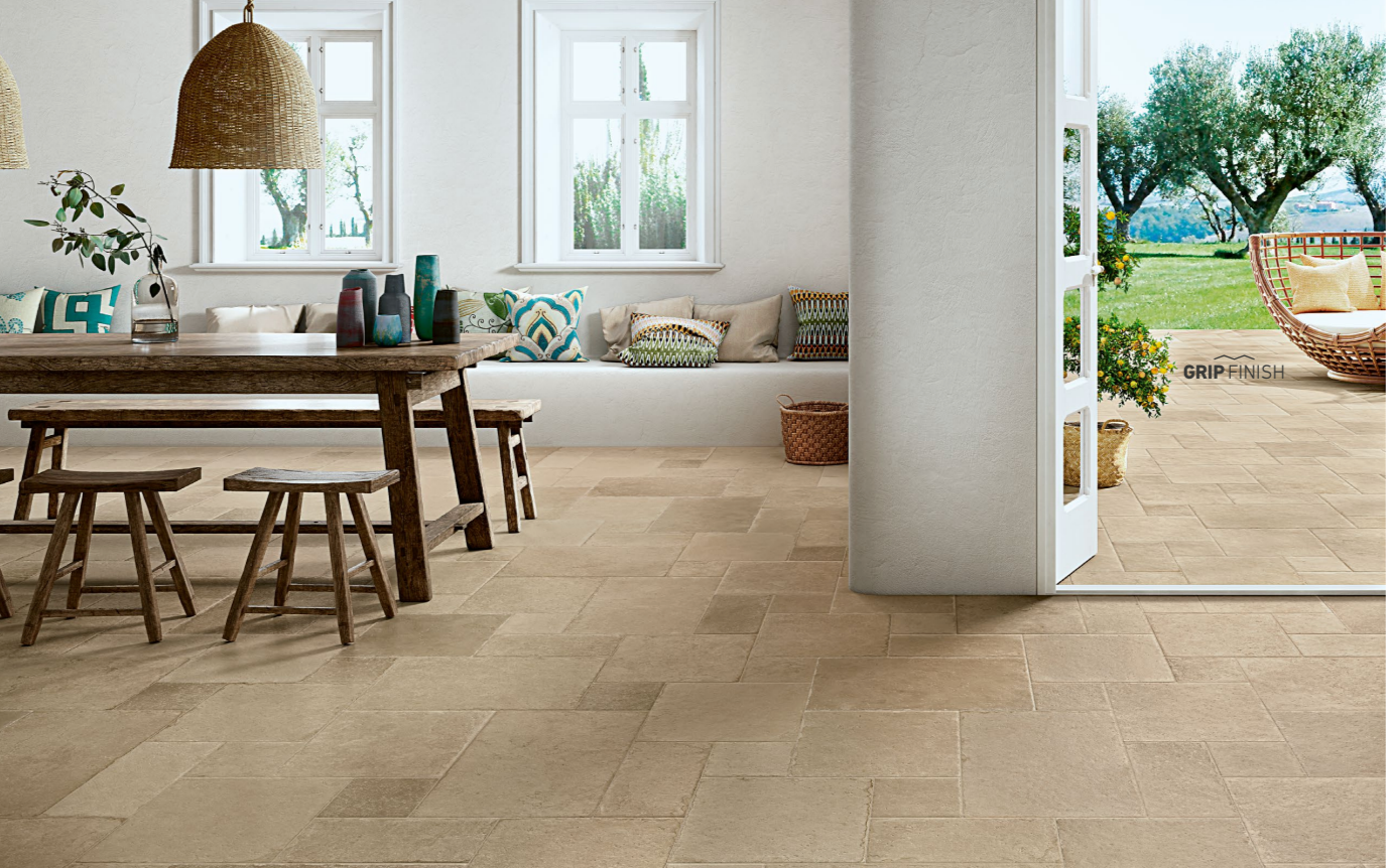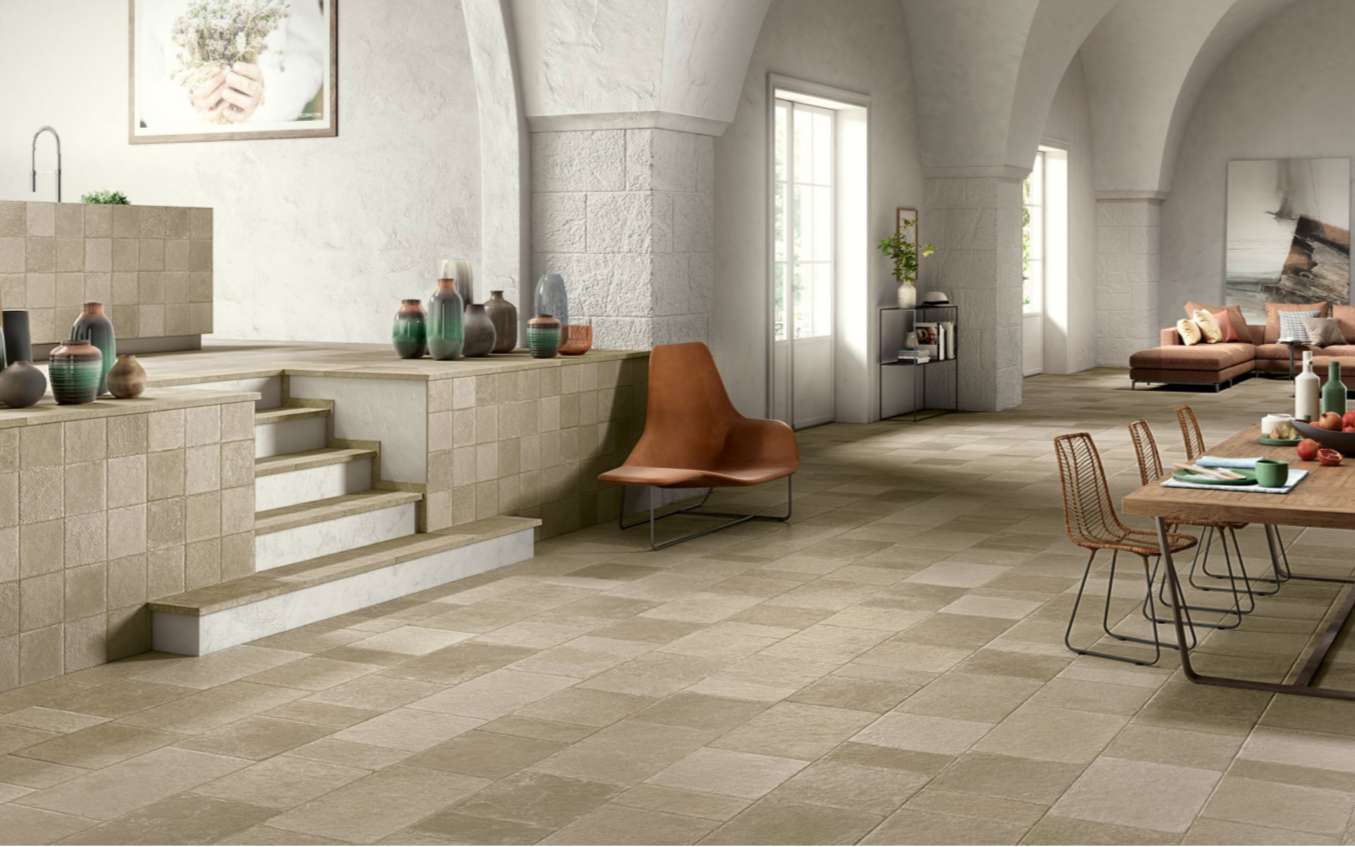 Mediterranean stones effects come back to life in our digital porcelain tiles with original and contemporary colors. The authentic feeling of stone pavings is enhanced by the multi-format laying, rich in different shades. Matching proposals for both indoors and outdoors allow continuity in laying, maintaining resistance and ease of cleaning.