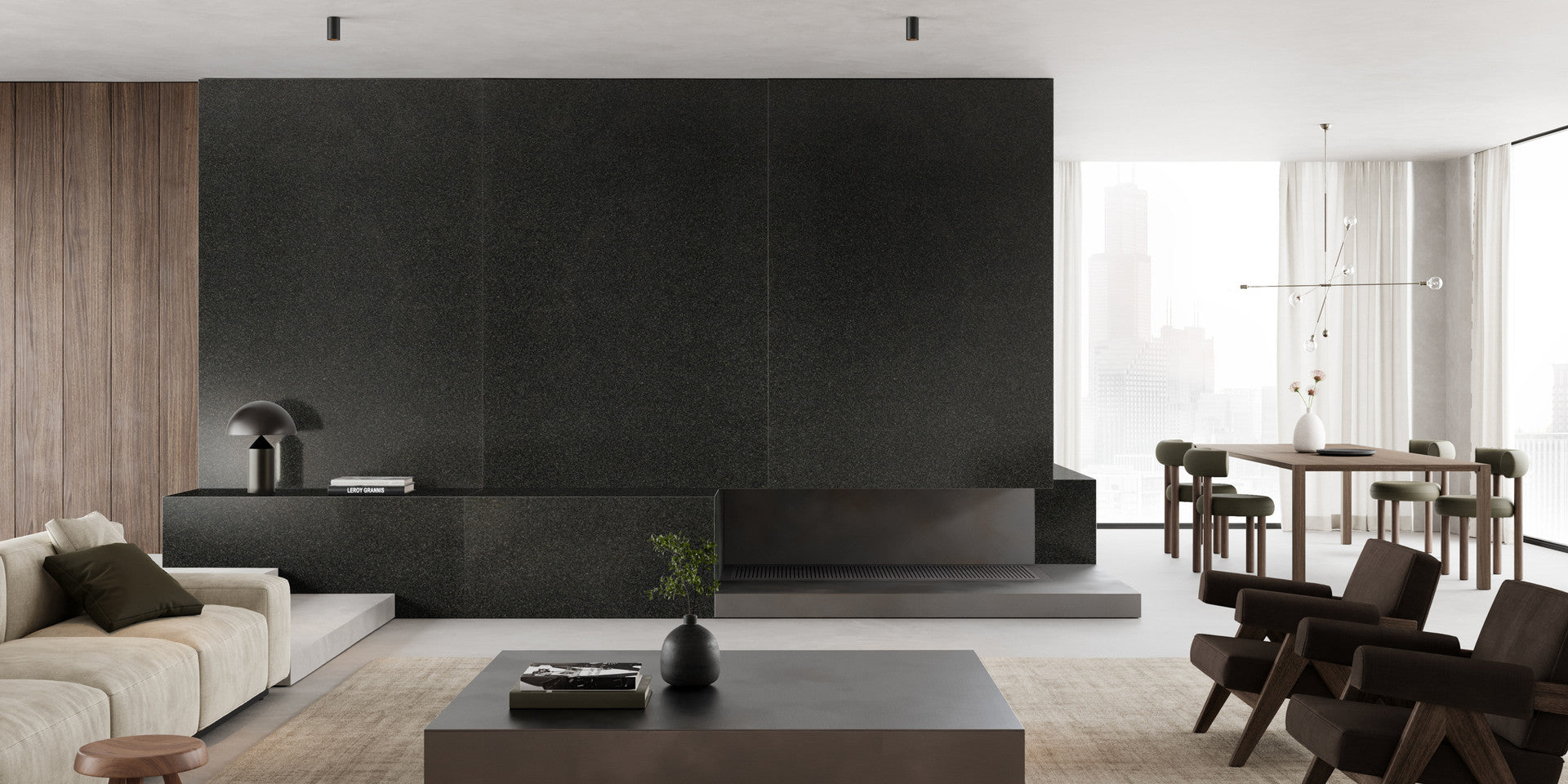 Safari Noir granite presents a refined interplay of shadow and texture, with a deep charcoal base subtly punctuated by intricate mineral compositions. Its uniform grain structure and muted tonal variations create an understated and commanding surface, lending itself to a wide range of architectural and design applications.