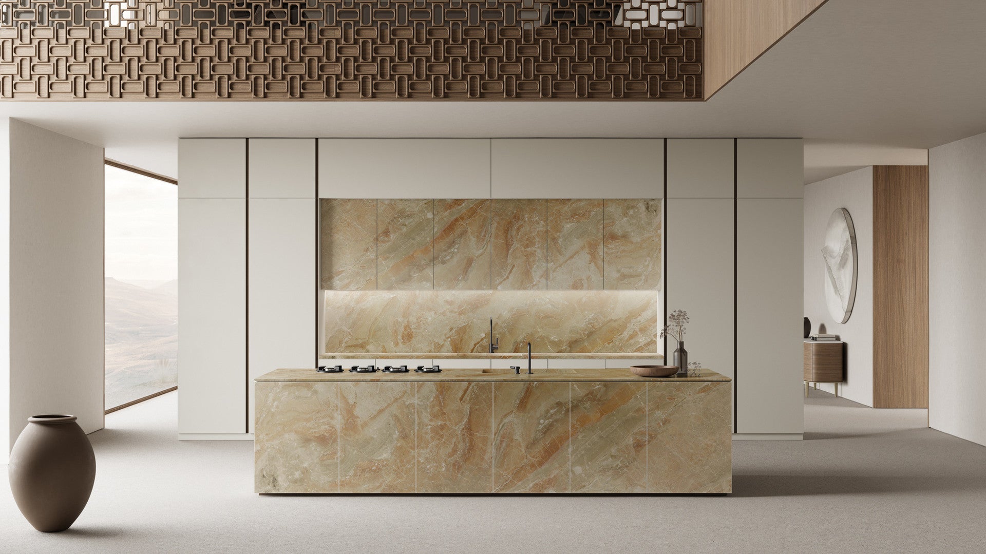 Sienna Breeze marble is a stunning natural stone that exudes warmth and movement. Its golden honey tones, soft caramel veins, and translucent mineral formations create a surface that feels both organic and refined. Swirling patterns and layered textures evoke the beauty of shifting sands and sunlit landscapes, making each slab a unique expression of nature?s artistry.