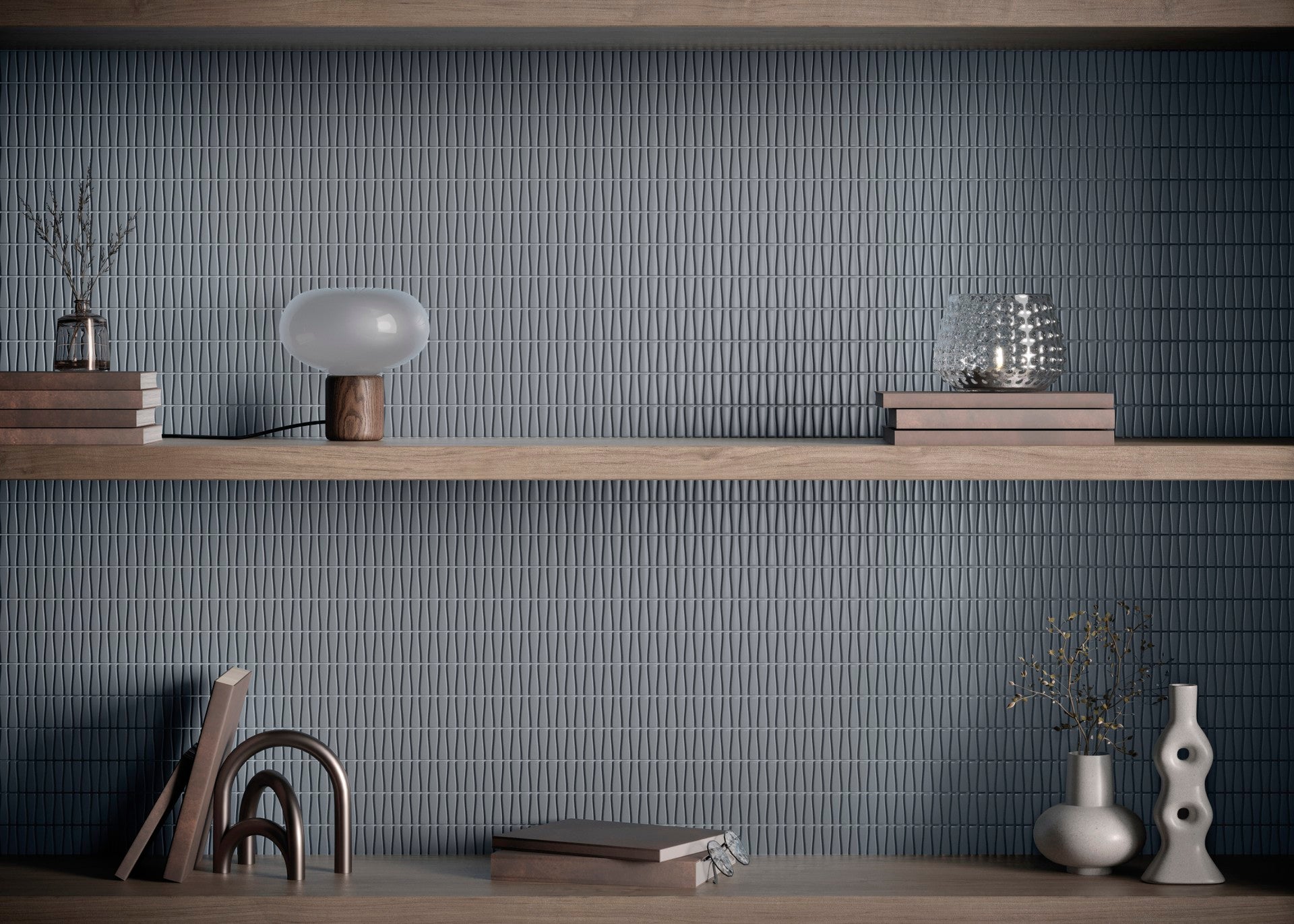 A timeless encounter of monochromatic tones, where versatility is the dominant note and the reliefs are the true protagonists. With long, tapered lines, they connect with all spaces. In a matte finish, the textures awaken a smooth and sophisticated dynamism. and the incessant movement provides amplitudes like true visual decorative choreography.