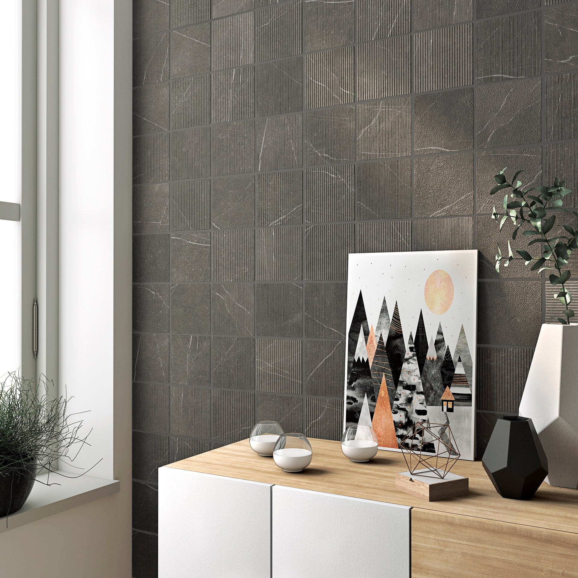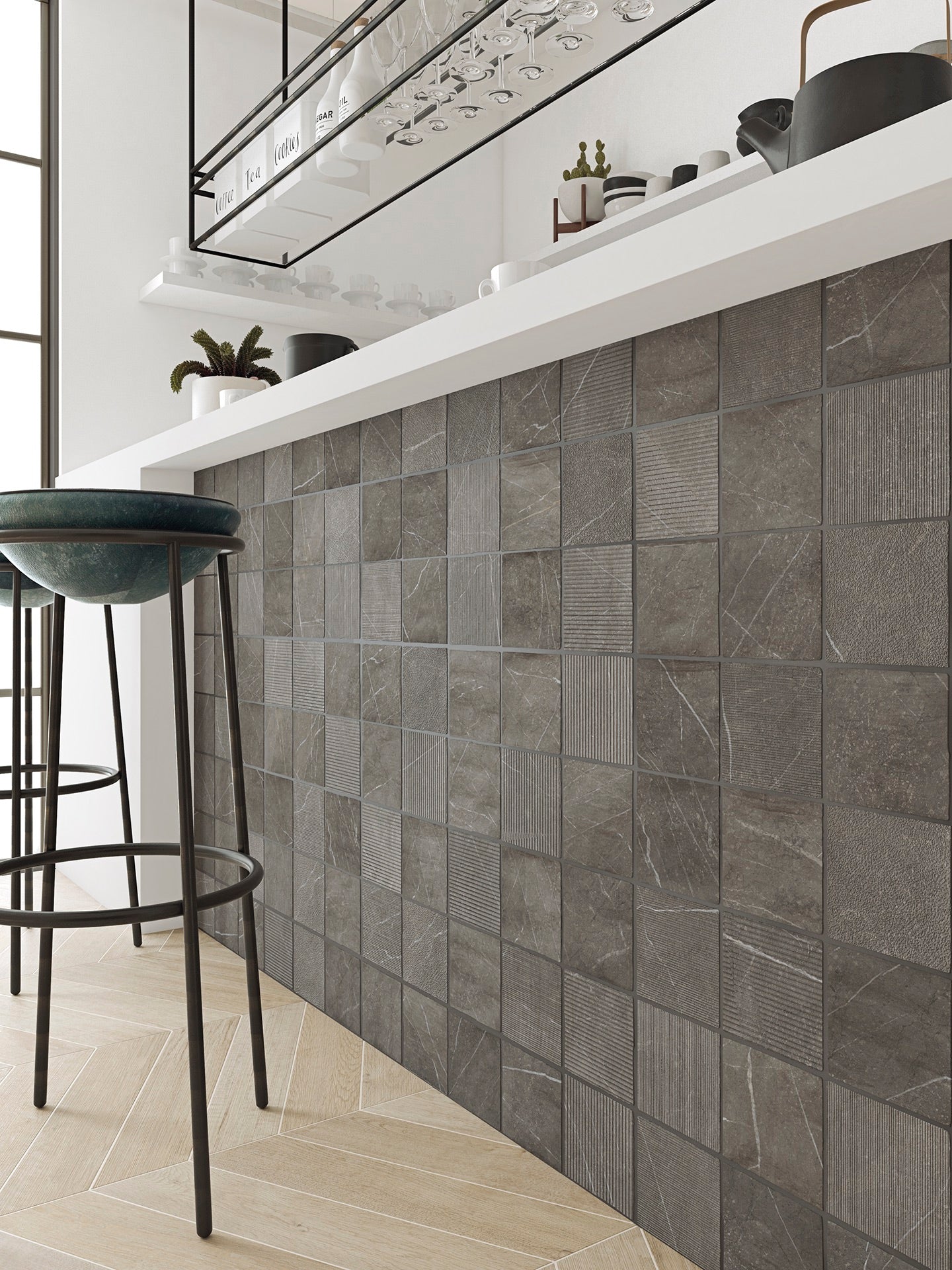 Smooth Grate brings an edge to the formal yet actual homes. Inspired in natural stones, highly valued for their aesthetics, refined veins and versatility to combine with any other looking finish.