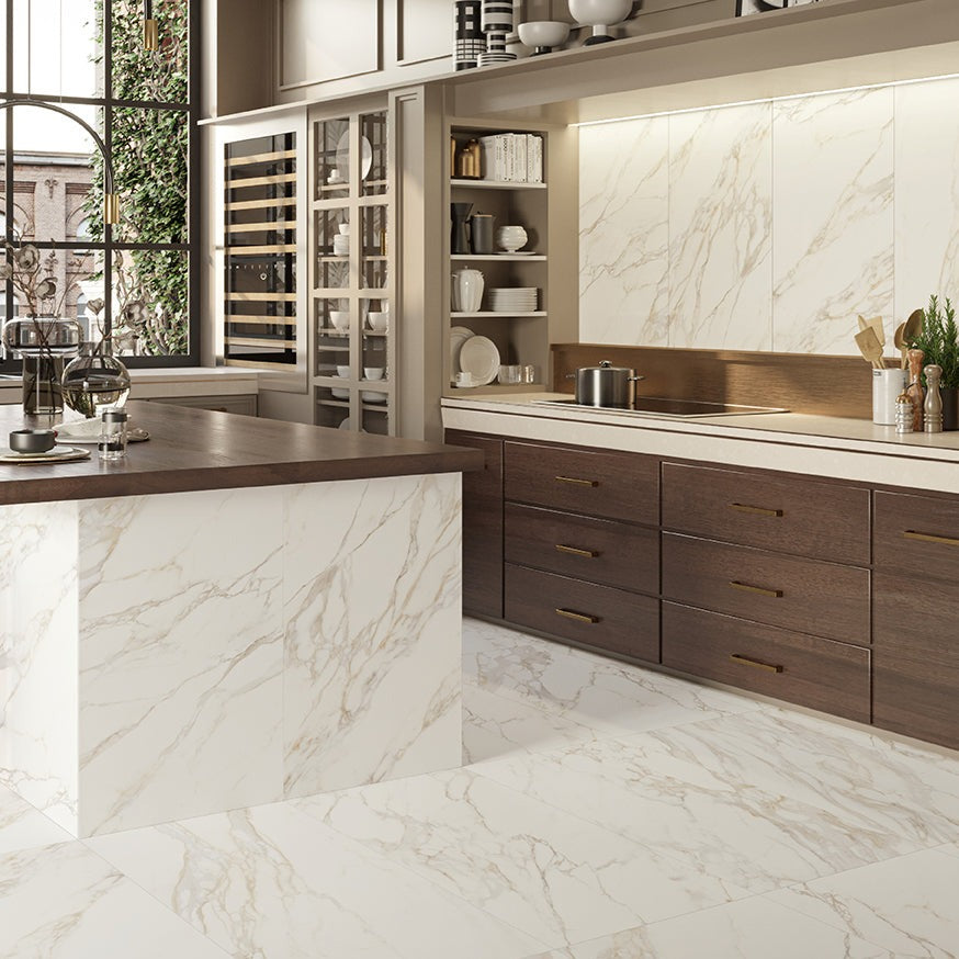 The allure and elegance of Italian white marble is reproduced on the ceramic surfaces of Stately Pure Selection; the special selection of fine marbles in which all the purity of white is enhanced by the four elegant patterns of the most beautiful and sought-after Italian veining.