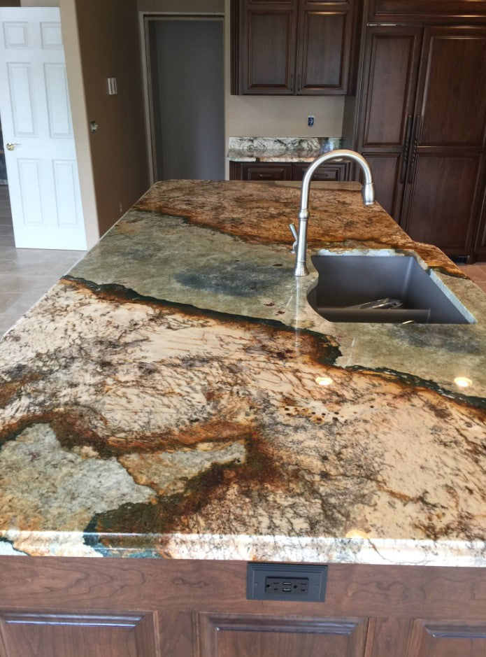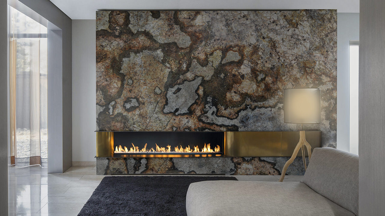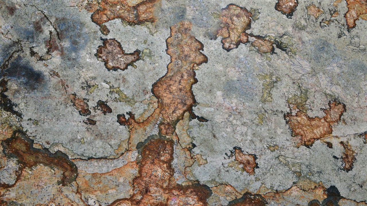 Telamon Granite is a captivating natural stone that showcases a stunning blend of earthy and vibrant hues. Its base of muted gray and green tones is intricately intertwined with striking orange, rust, and golden patterns, resembling abstract art crafted by nature. The dynamic interplay of colors and textures makes this granite a bold choice for creating unique and unforgettable interiors.