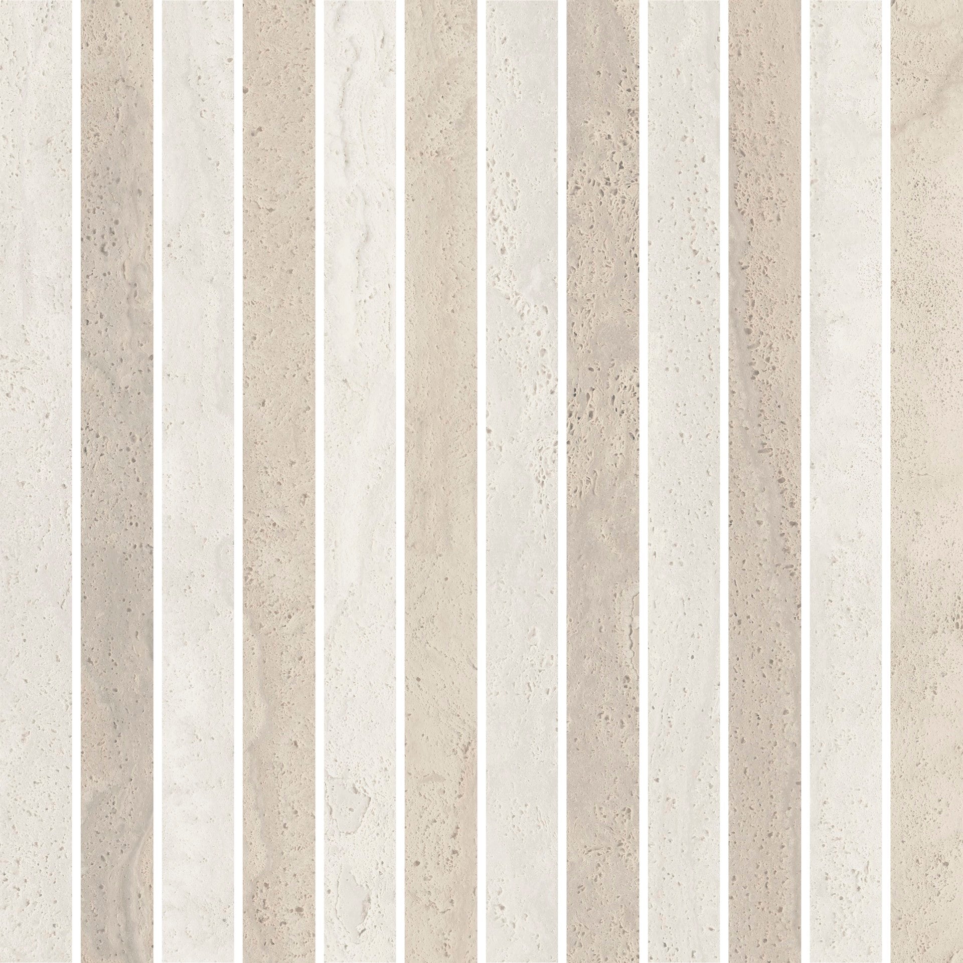 Tromba 1x12IN Mosaic is the contemporary version of noble Travertine slabs. Although no longer available in nature, technology has materialized it into a prime resource for architecture, interior design, and furniture.